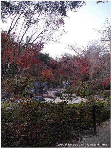 枯山水在這個時節,更襯托了秋日已盡的蒼涼感,猛一看會以為是座被遺棄的庭園,這是秋天在寶筐院正式畫下句點的姿態。
